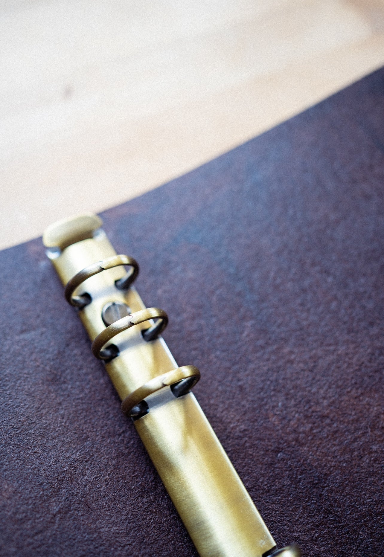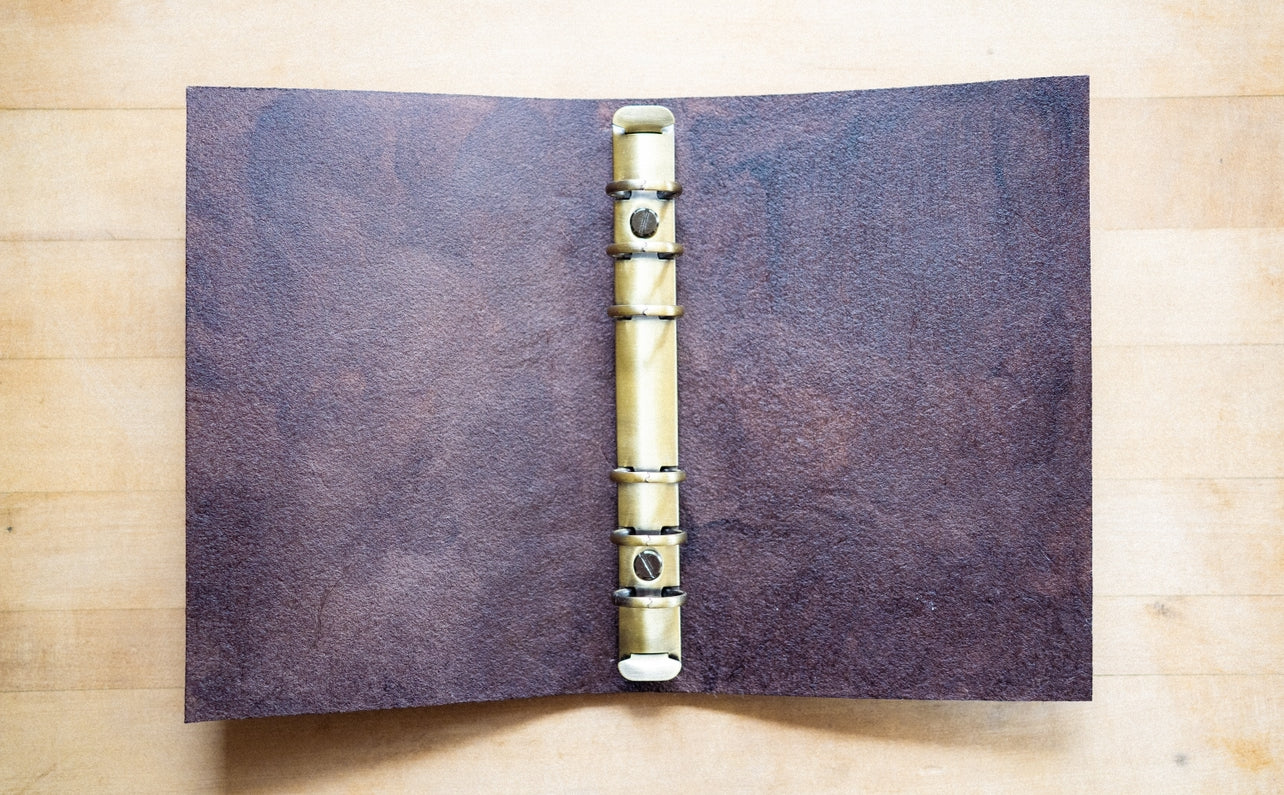 This brown binder is the Auto's 6-Ring Binder STANDARD system in personal size. Used in product testing, this binder is fully functional but has some defects that make it a B-Grade cover. Nothing about the cover is unusable, just some features are not up to our A Grade standards!